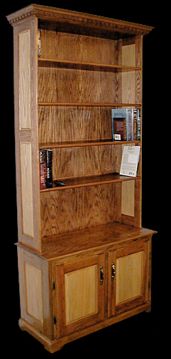 Description: Large bookcase built for myself. The top shelf section is detachable from the bottom cabinet in order to move it.