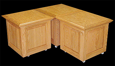 Description: Storage boxes built to be used as side tables and coffee tables.