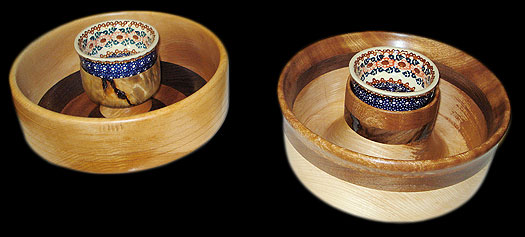 Description: Wooden bowl includes a removeable glass bowl and reveals a place to put you nut cracker and picks.